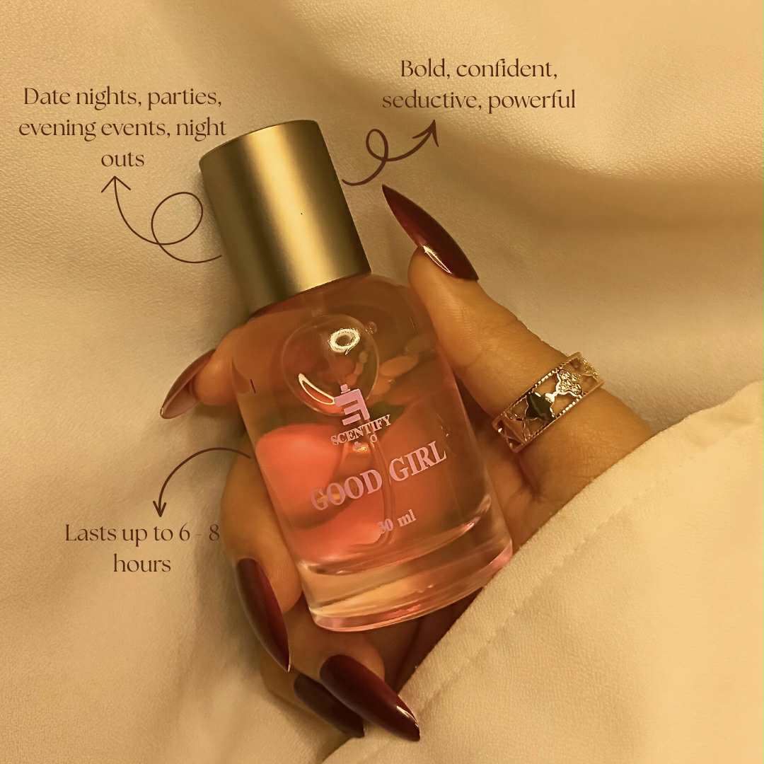 Turn heads instantly with this Good Girl–inspired dupe, a glamorous amber‑floral gourmand made for date nights, parties and every after‑dark moment. The scent opens with a delicious hit of almond and a subtle coffee sparkle, giving a warm, addictive first impression that feels both playful and powerful.